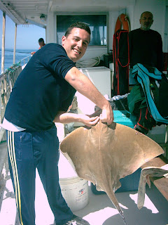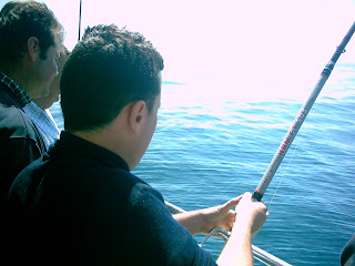 Siamo ormai pronti a partire per il rientro quando la canna di Fabrizio si flette,subito dopo la ferrata pensiamo a un gronco di grossa taglia ma subito una potente fuga ci fa cambiare idea,quando ormai sui 15 mt ecco che con un ultima fuga riguadagna il fondo,ma ormai il pesce è stanco e comincia a farsi recuperare,la curiosità è alta e quando arriva a galla eccola svelata, un